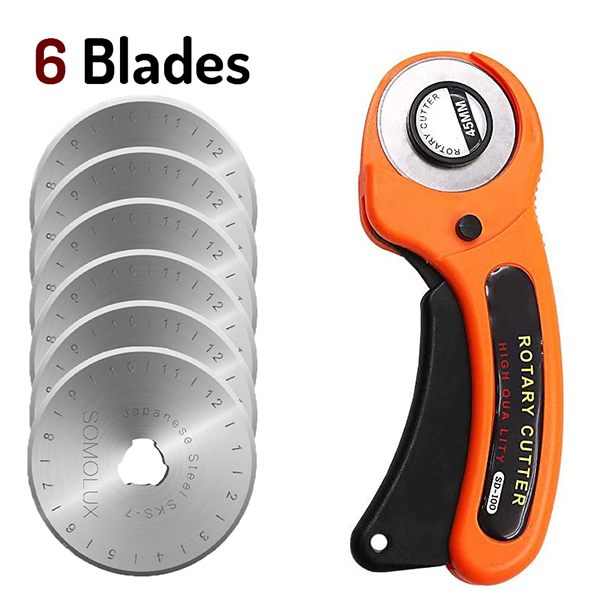 The Premium 45mm Rotary Cutter for Quilters ideal for fabric but also cuts leather and plastic. Save time and work faster and more accurately. The cutter will slice through multiple layers of fabric and is designed with ease of use, speed and safety in mind.