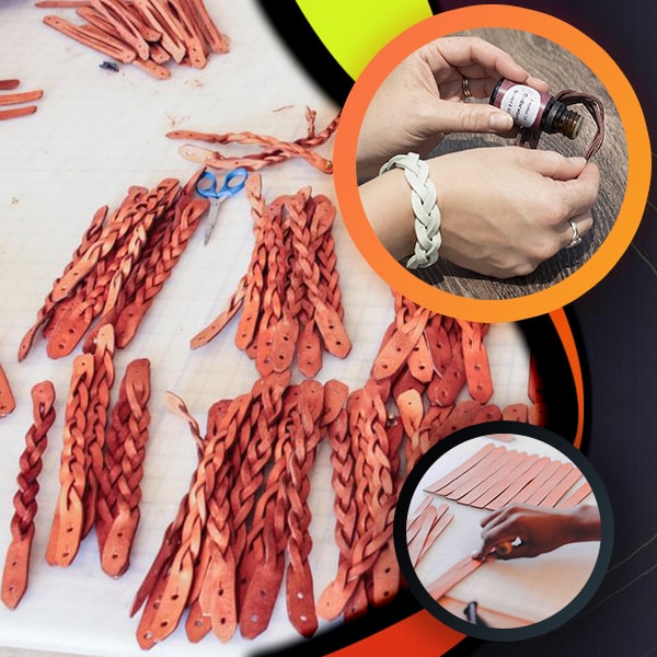 Looking to make a leather Mystery Braid Cuff and want a head start? Need a great gift for a crafty friend or family member? The Mystery Braid Bracelet Maker has you covered. This kit comes with (almost) everything you need to make a stylish, durable key fob out of pure vegetable-tanned leather. No Leatherworking experience required!