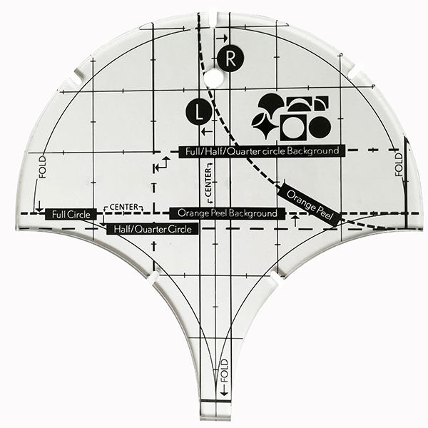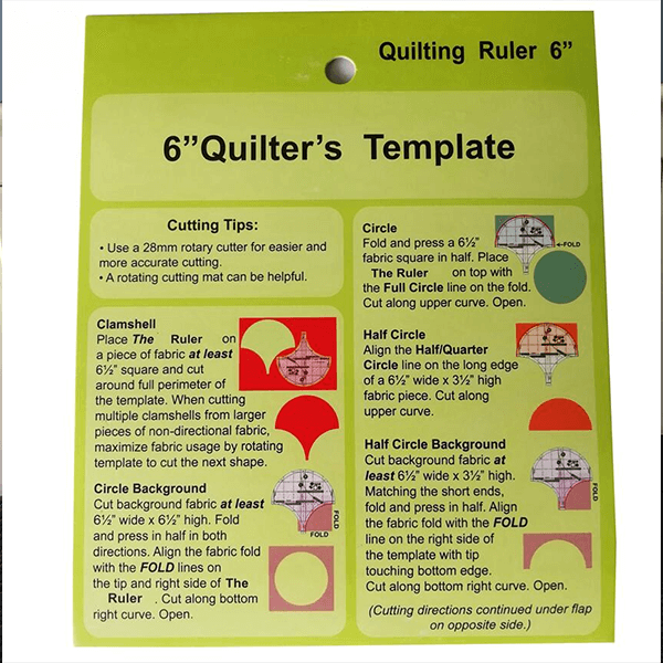 The Clamshell Quilt Tool is an innovative multi function template that can be used to cut 6in clamshells, circles, half circles, quarter circles, and orange peel shapes! This is the “new and improved” Clamshell Quilt Tool 6in which now includes registration marks right on the template for easy transfer to your shapes.
