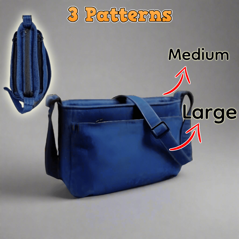 Denim Multi-Compartment Crossbody Bag PDF Download Pattern (3 sizes included)