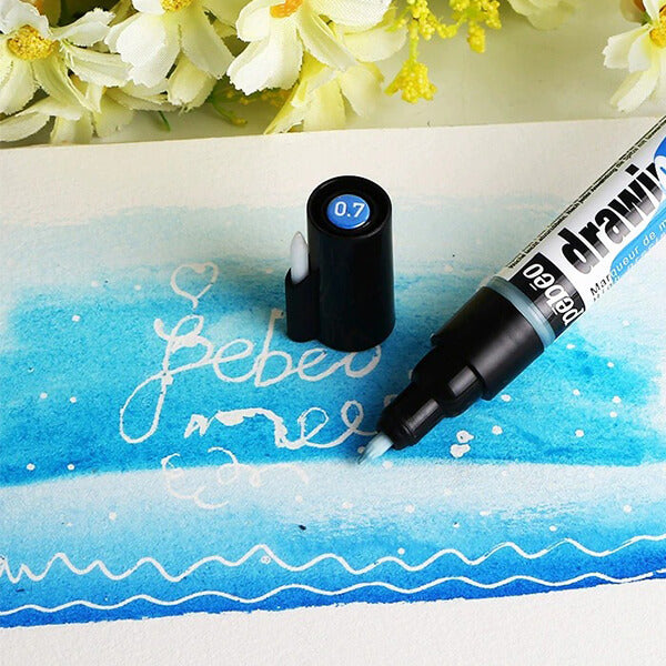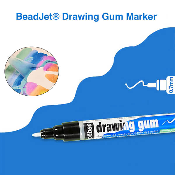 BeadJet® Drawing Gum Marker is a liquid masking fluid which is painted on and peeled off to obtain works in reserve, executed in ink, watercolor, and gouache.The drawing gum marker has a 0.7 mm nib for fine lines and detail work. The marker comes with one replacement nib located on the cap.