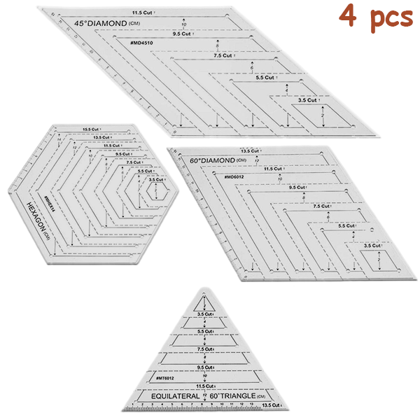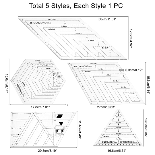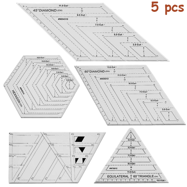 - CONTENT AND SPECIFICATIONS - Package includes 5pcs of Quilting Ruler Set in the following sizes: