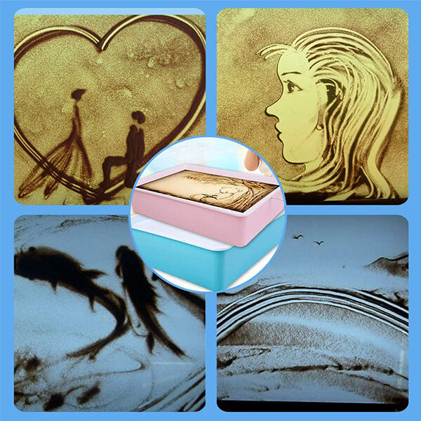 Sand painting table develop hand-eye coordination, fine motor skills, problem solving, shape recognition, memory, and task completion. DIY drawing can effectively inspire people's thinking, train their innovation and patience. Sand painting is both challenging and fun for adults and kids.